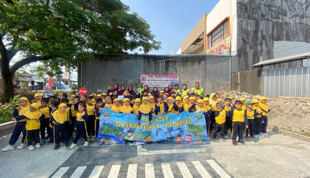 Mediacyberbhayangkara.com - Tangerang - Suasana ceria terlihat di TK Ar Rizqi Sarakan, Sepatan, Kabupaten Tangerang, Jumat (24/4/2026) pagi. Sejumlah anggota Satuan Lalu Lintas Polres Metro
