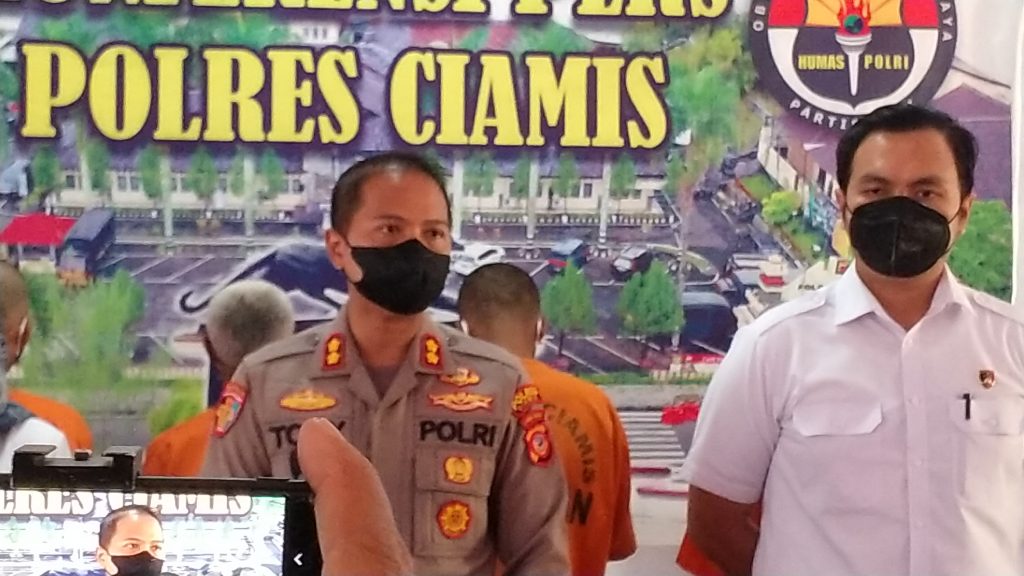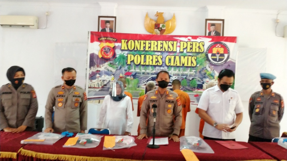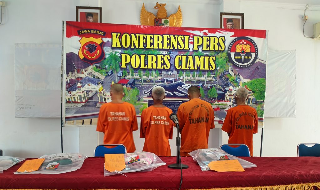 “Terhadap laporan, berdasarkan hasil penyelidikan dan alat bukti yang ada terhadap terlapor sebanyak 4 orang sudah ditetapkan sebagai tersangka,” kata Kapolres Ciamis AKBP Tony Prasetyo Yudhangkoro, SH., S.I.K., M.T., didampingi Kasat Reskrim Polres Ciamis AKP Muhammad Firmansyah, S.I.K., dan Kasi Humas Polres Ciamis Iptu Magdalena NEB, dalam konferensi pers di Aula Pesat Gatra Mapolres Ciamis, Rabu (6/7/2022).