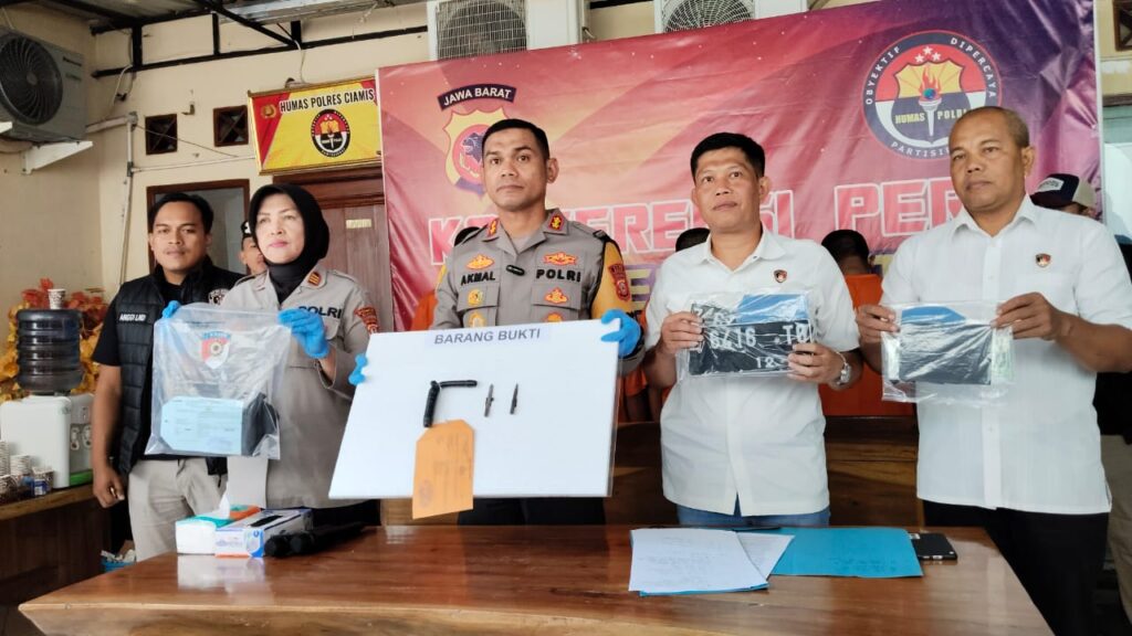 “RR kita tetapkan sebagai tersangka pelaku pencurian kendaraan bermotor. Dimana tersangka melancarkan aksi di wilayah Panumbangan, Kabupaten Ciamis,” ujar Kapolres Ciamis Polda Jabar AKBP Akmal SH., S.I.K., M.H., didampingi Kabag Ops Ciamis Polda Jabar Kompol Nia Kurnia, Kasat Reskrim Polres Ciamis AKP Joko Prihatin, SH., dan Kasi Humas Polres Ciamis AKP Magdalena NEB, Rabu (19/6/2024).