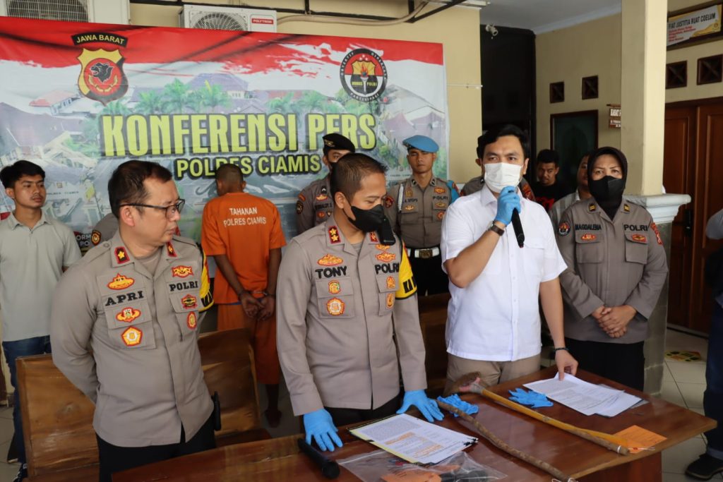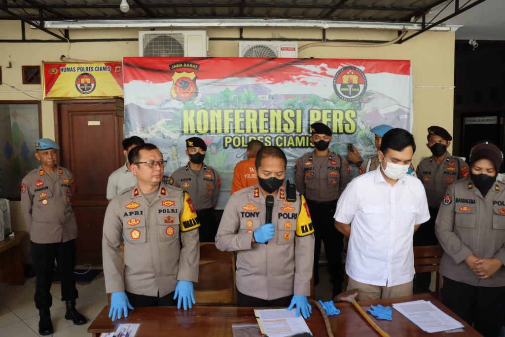 “Pengungkapan kasus ini berawal dari Ibu Korban yang melaporkan kepada Kepolisian atas kelakuan kekerasan yang dilakukan oleh suami yang merupakan ayah tiri dari anaknya,” ujar Kapolres Ciamis Polda Jabar AKBP Tony Prasetyo Yudhangkoro, SH., S.I.K., M.T., didampingi Wakapolres Ciamis Kompol Apri Rahman, SE., Kasat Reskrim Polres Ciamis AKP Muhammad Firmansyah, S.I.K., Kasi Propam Polres Ciamis AKP Rahmad Fanani, dan Kasi Humas Polres Ciamis Iptu Magdalena NEB dalam konferensi pers di Mapolres Ciamis, Kamis (16/02/2023).