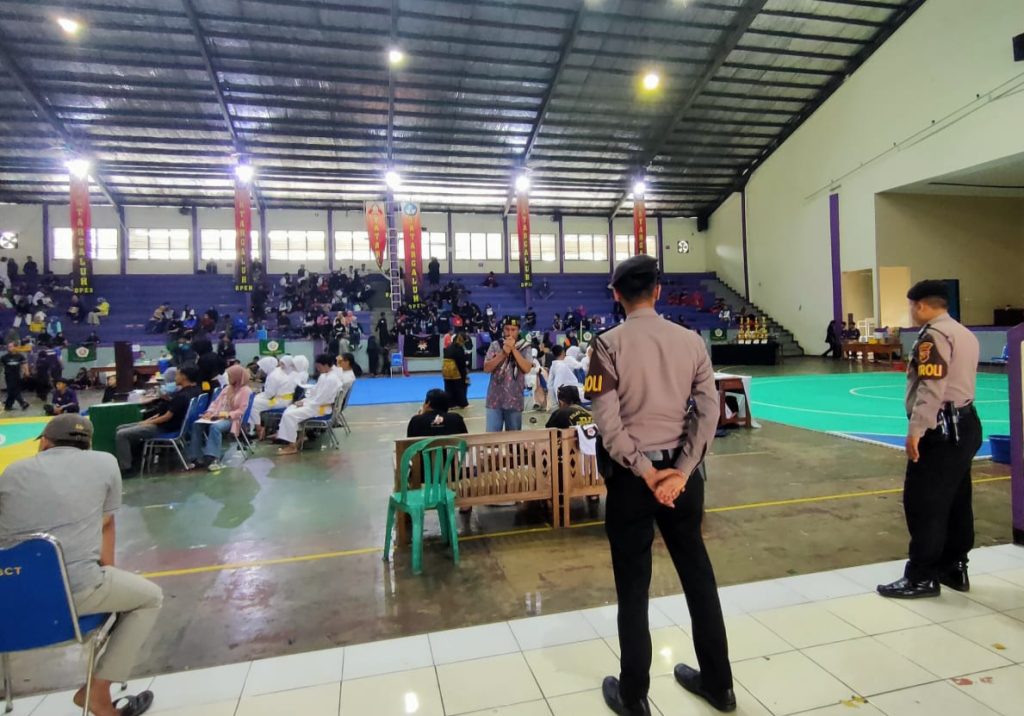 Ciamis, Jabar – Personel Satuan Samapta Polres Ciamis Polda Jawa Barat melaksanakan pengamanan kegiatan Kejuaraan Pencak Silat Terbuka antar Paguron tingkat pelajar se-Priangan Timur. Pengamanan dilaksanakan di sekitar lokasi perhelatan yang di Gedung Gelanggang Galuh Taruna (GGT) Ciamis, Kabupaten Ciamis, Jawa Barat, Sabtu (06/05/2023).