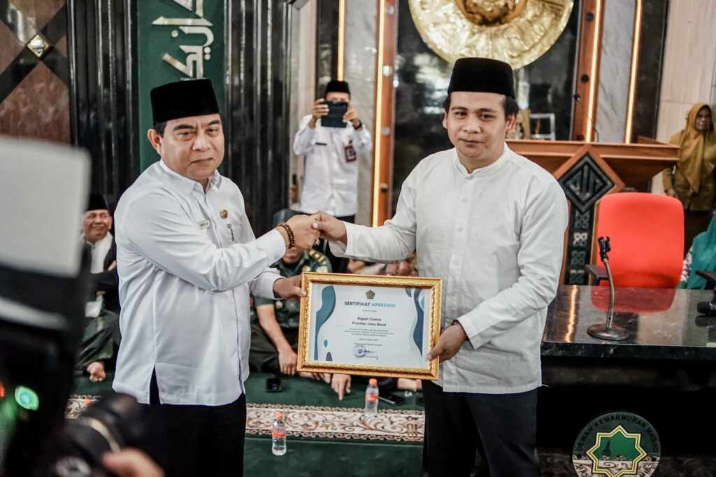 Penghargaan diserahkan kepada Wakil Bupati Ciamis oleh Kepala Kantor Kementrian Agama Ciamis.