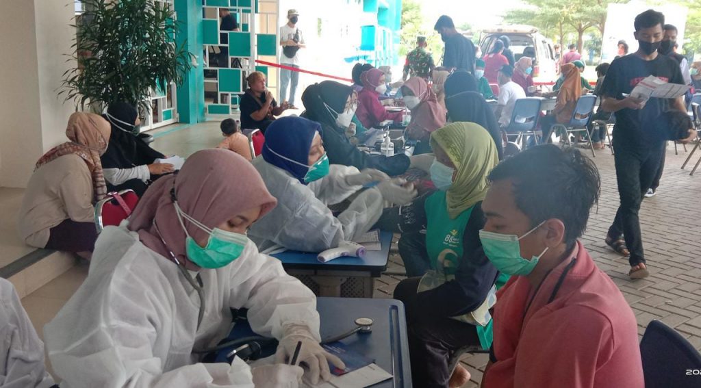 Adapun tahapan kegiatan vaksinasi ini diawali dengan Registrasi, Pengisian formulir kartu kendali vaksinasi covid 19, Pengukuran suhu badan serta tensi darah, Screening anamnesa, Penyuntikan vaksin dan yang terakhir Onservasi kurang lebih 30 menit.