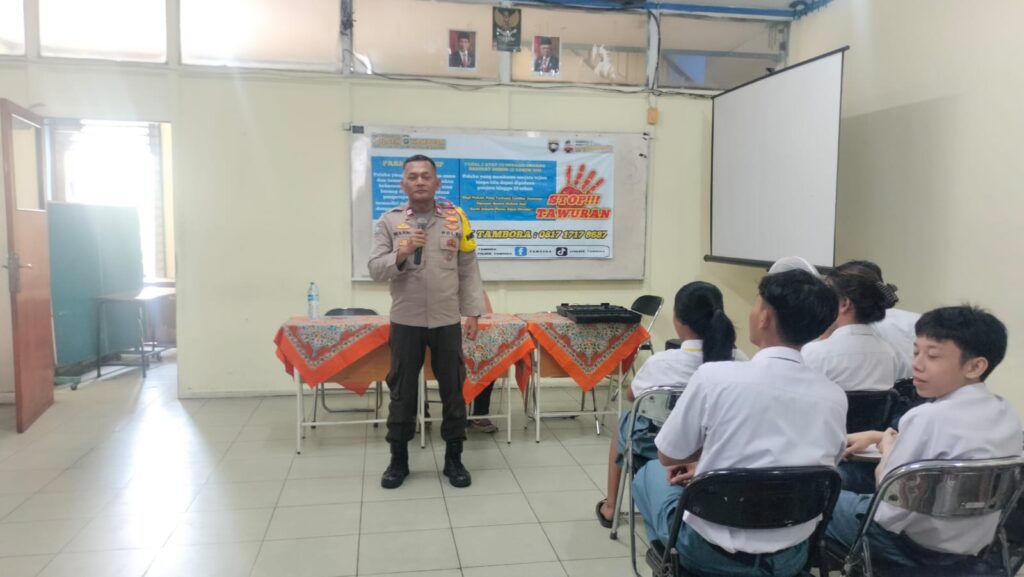 Mediacyberbhayangkara.com – Jakarta Barat, Dalam upaya menjaga ketertiban dan keamanan di kalangan pelajar, Bhabinkamtibmas Kelurahan Krendang Polsek Tambora, Aiptu Warno, menggelar kegiatan Police Goes To School di SMK Bina Karya, Jl. KH Moh Mansyur, Tambora, Jakarta Barat, Jumat, 11/10/2024.