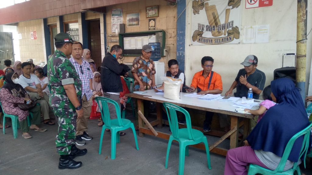 mediacyberbhayangkara.com – Kodam Jaya – Bertempat di Kantor RW 05 Jln Adikarya RT 006/05 Kel Kedoya Selatan Kec Kebon Jeruk Jakarta Barat, Danramil 05/KJ Kapten Kav Edi Setiawan bersama anggota Babinsa dan Mitra Jaya laksanakan giat pemantauan pembagian Bansos Beras Bulog dari Pemerintah berkerja sama Pos dan Giro, bagi warga PKH (Penerima Kartu Harapan). Sabtu (06/05/2023)