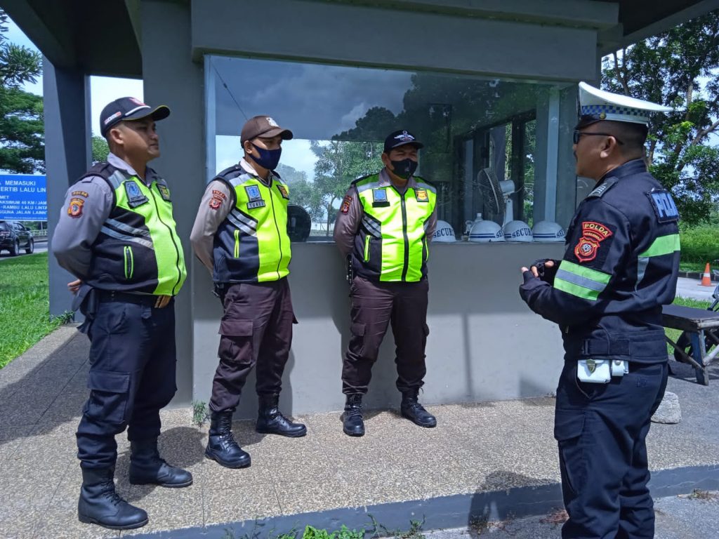 Kali ini, anggota Satlantas menyasar personel security yang berada di pos satpam Kawasan Industri Indotaisei Karawang.