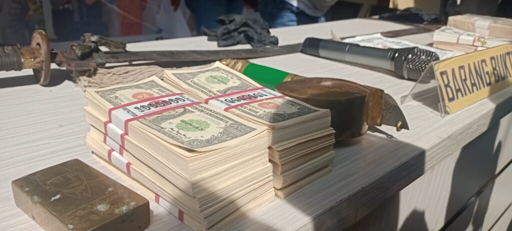 Jadi pelaku meyakinkan, bahwa 1 gepok ini dijual dengan harga 25 juta, kemudian yang bersangkutan (calon pembeli) sudah berminat dengan menampilkan benda keramat yang seolah-olah asli.