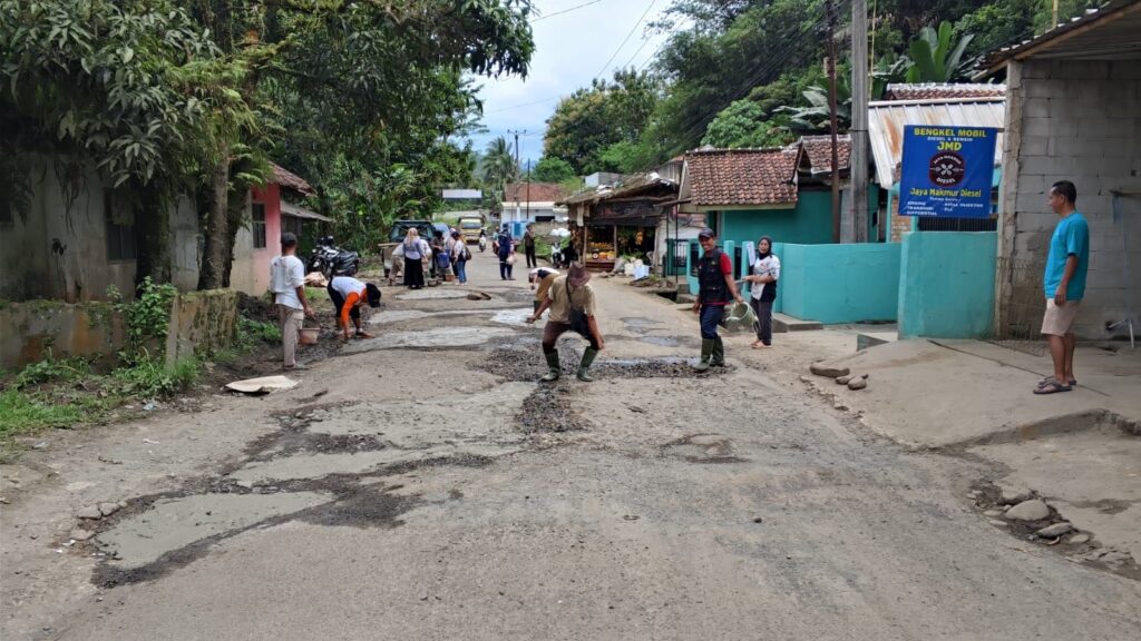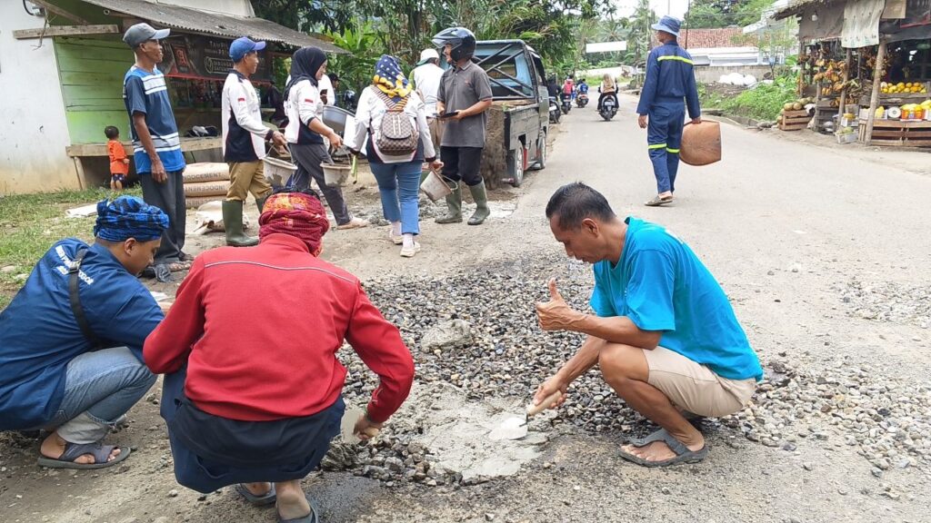 Pemerintah Kabupaten Bogor belum bergerak, warga lebih dulu turun tangan. Ruas jalan Panyaungan – Nanggung – Curugbitung di wilayah Pakapuran, Desa Parakan muncang yang sebelumnya dikeluhkan karena berlubang dan memicu kecelakaan, akhirnya ditambal secara swadaya oleh masyarakat.