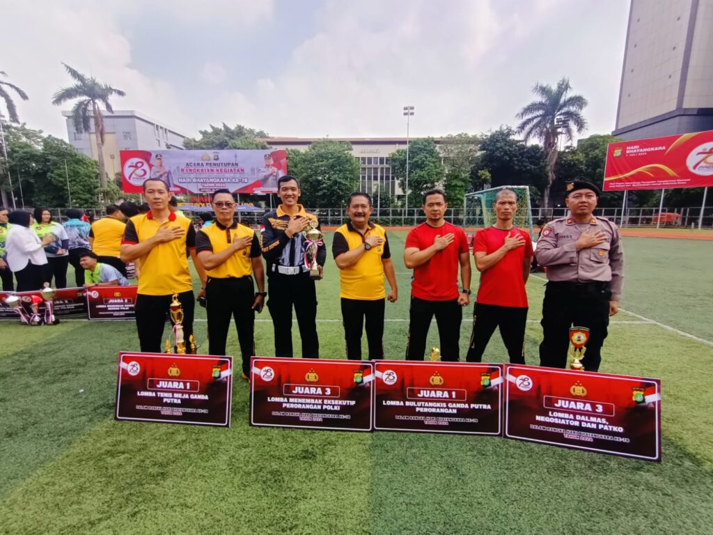 Acara puncak perlombaan Hari Bhayangkara ke-78 ditutup dengan upacara dan pemberian penghargaan kepada para pemenang lomba, di mana Polres Metro Depok menerima empat trofi juara umum yang diserahkan langsung oleh Karo SDM Polda Metro Jaya Kombes Pol Langgeng Purnomo S.I.K, M.H di Lapangan Presisi Polda Metro Jaya.
