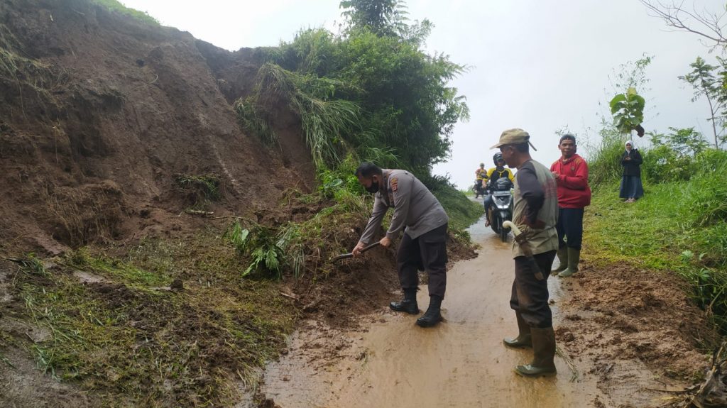 mediacyberbhayangkara.com – Bogor– Intensitas hujan yang cukup tinggi di wilayah kecamatan Cigombong Kabupaten Bogor, akibatkan tanah longsor hingga akibat kan akses jalan warga putus akibat tertutup longsoran tanah
