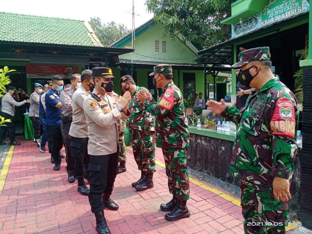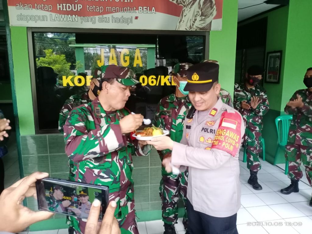 Kedatangan Kapolsek bersama puluhan personel tersebut disambut hangat oleh Kapten Abdul Kholik Danramil 06/KD beserta Prajurit di Makoramil.