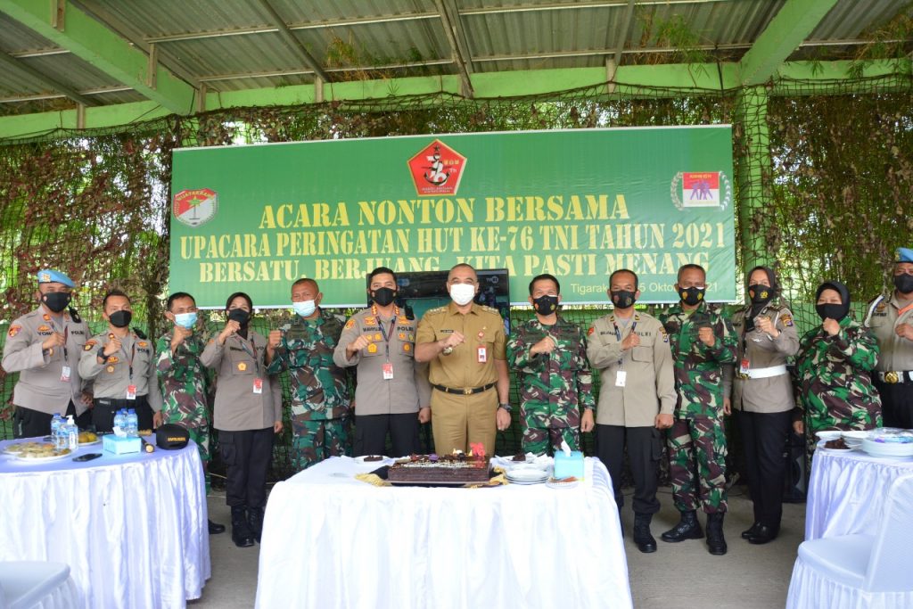 Seperti diketahui sinergitas TNI – Polri di Kab Tangerang sangat akrab dan kompak terlihat personel Polres Kota Tangerang memberikan nasi tumpeng dan kue ulang tahun yang bertuliskan Dirgahayu TNI ke 76.