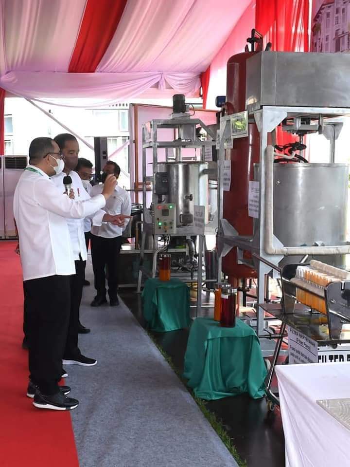 Mediacyberbhayangkara.com – Medan – Presiden Joko Widodo meninjau proses penelitian minyak makan merah di Pusat Penelitian Kelapa Sawit (PPKS), Kampung Baru, Kota Medan, pada Kamis, 7 Juli 2022. Minyak makan merah sendiri merupakan inovasi minyak sawit yang berpotensi digunakan sebagai pangan fungsional dalam membantu pencegahan stunting atau kekerdilan dari masyarakat.