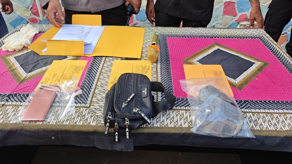 Barang bukti berupa satu buah tas pinggang warna hitam dan satu buah topi yang digunakan pelaku saat melakukan aksinya telah diamankan oleh pihak kepolisian. Saat ini, pelaku masih menjalani pemeriksaan lebih lanjut di Polsek Johar Baru.
