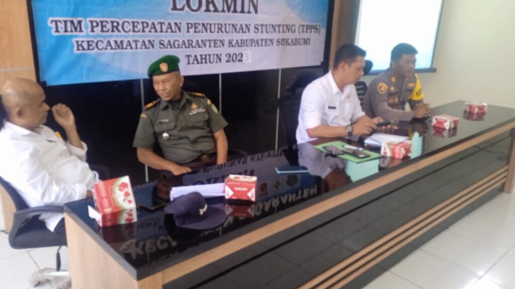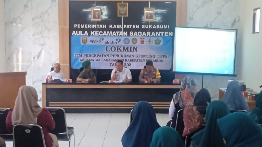 Kecamatan Sagaranten mengadakan Loka Karya Mini (Lokmin) Tim Percepatan Penurunan Stunting (TPPS) dimana kegiatan di hadiri oleh Kapolsek Sagaranten Polres Sukabumi AKP Deni Miharja, Danramil 0622-11 Sagaranten, Plt Camat Sagaranten Ridwan Agus Mulyawan dan Kepala UPTD Puskesmas Sagaranten. Dalam kesempatan kali ini Hadir juga dari Dinas P3AP2KB, Ketua Pokja IV TP PKK Kecamatan, Bidan Kordinator, Petugas Gizi, PLKB, Kader TPK (Bidan, Kader KB, Kader PKK) Kegiatan ini dilaksanakan di Aula Kantor Kecamatan Sagaranten.