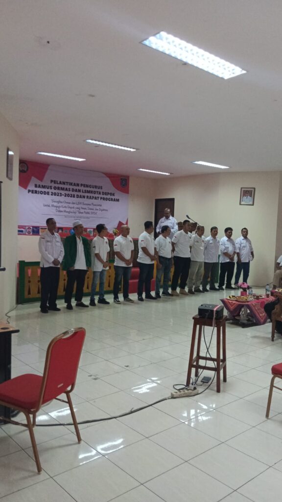 Mediacyberbhayangka.com – Depok – ketua umum badan Musyawarah ( Bamus ) Organisasi masyarakat juga Lembaga swadaya masyarakat ( LSM ), mengukuhkan dan melantik langsung Kepengurusan terpilih, dalam mengukuhkan terkait nama yang terpilih, ketua Umum Bamus IR. JARMUD AS selaku ketum Bamus kota depok, untuk kepengurusan masih mengunakan anggota dan pengurus yang lama, acara berlangsung di aula kecamatan pancoran mas sekitar pukul 09 : 00 sampai dengan selesai 29 / 07 / 2023.