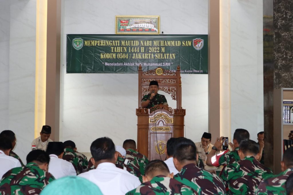 Dalam kesempatan itu Kasdim 0504/Jakarta Selatan Letkol Inf Dr. M. Fatkhul Zuhdi, S.Ag., M.Pd.I. mengatakan, Nabi dicintai karena akhlak dan budi pekertinya yang mulia luar biasa, dapat dijadikan contoh dan suri tauladan yang akan memberikan syafaat di akhirat nanti.