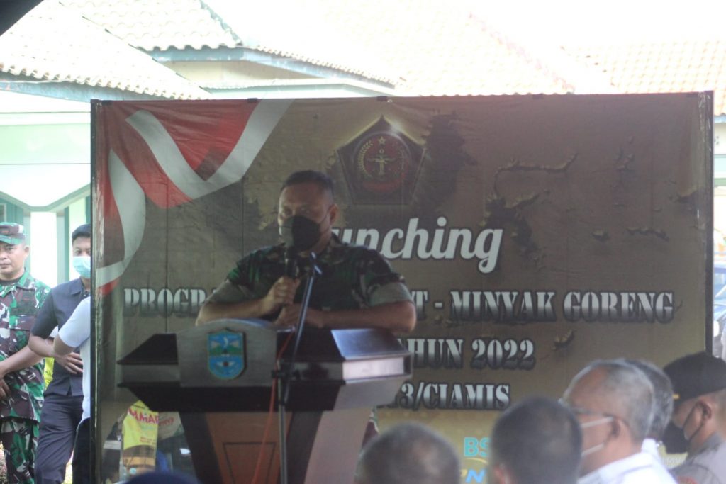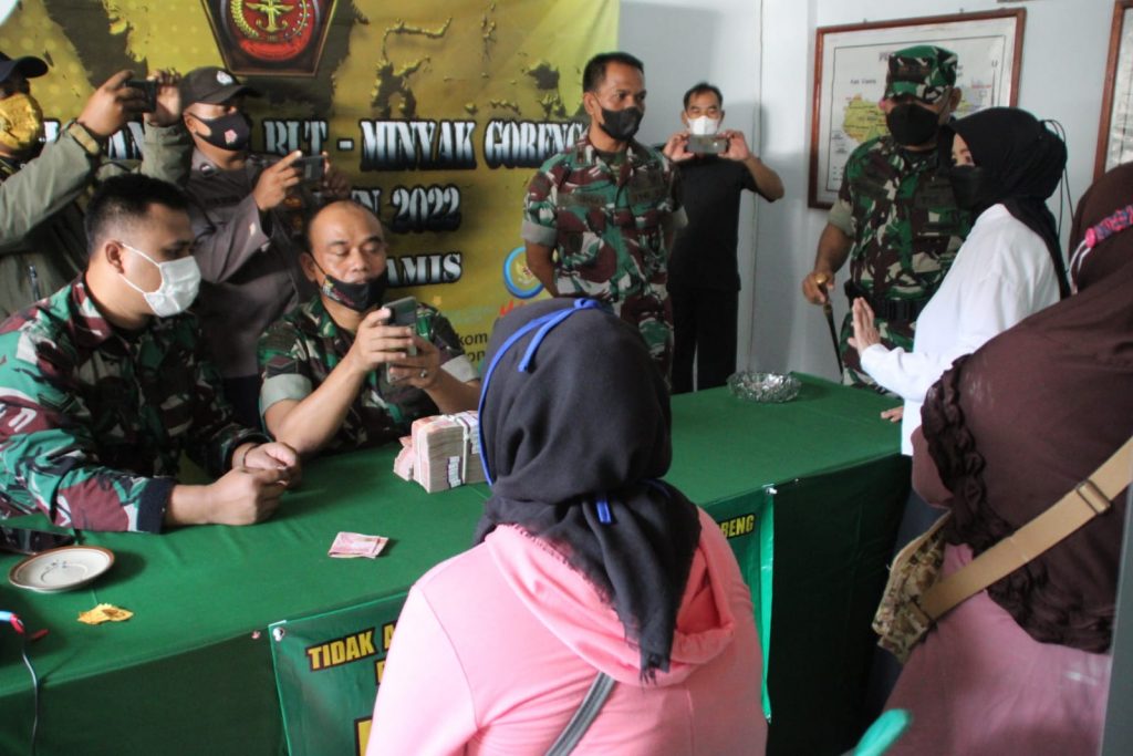 Kota Banjar — Dandim 0613 Ciamis Letkol Inf Wahyu Alfiyan Arisandi,S.I P.M.I.POL, Lounching Penyaluran Bantuan Tunai Untuk Pedagang Kaki Lima dan Warung (BTPKLW) Minyak goreng Tahun 2022, acara ini dilaksanakan di Halaman Makoramil 1313/Banjar Kota Banjar, Rabu (18/5/2022).