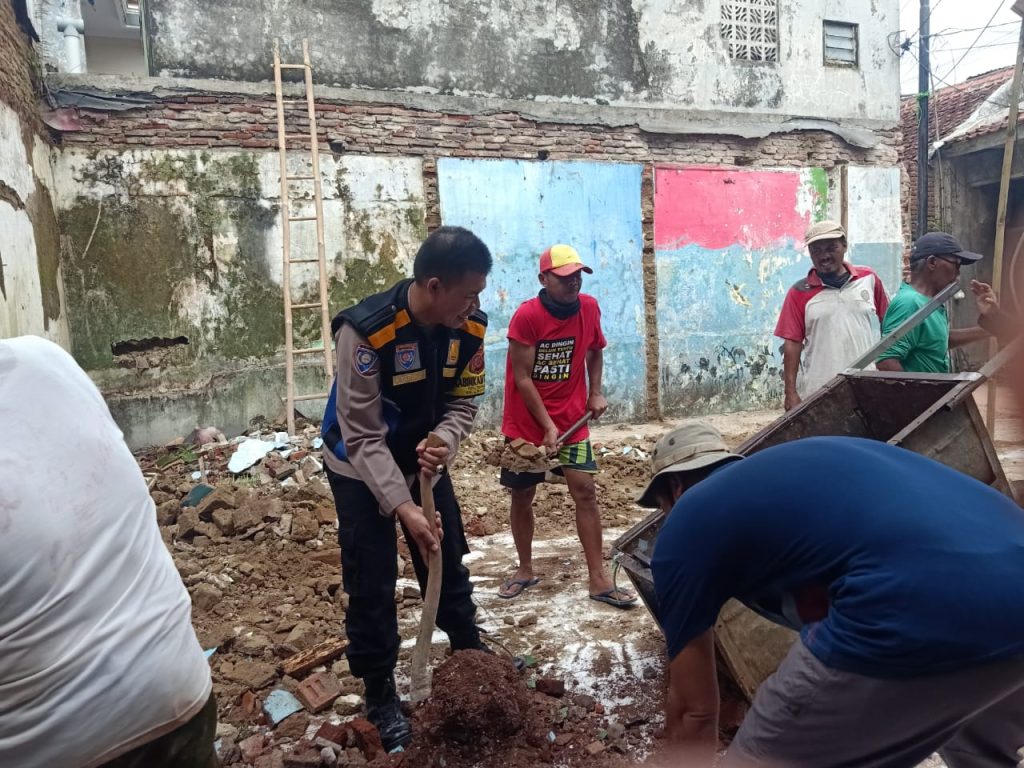 Polisi Gotong Royong, Bersihkan Material Bangunan Rumah Warga Yang Sudah Lapuk