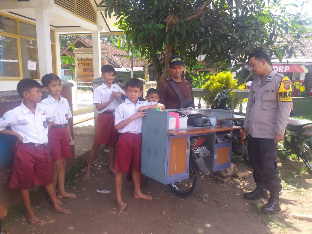 Dalam kegiatan yang di lakukan Bhabinkamtibmas Desa Binangun Aipda Dani Trisnawan S.I.P., ia menyapa para pedagang yang biasa berjualan di SD N 1 Binangun dan mentraktir jajanan aci telor ” cilor ” dan menyampaikan imbauan dan arahan terkait makanan yang dijual harus aman dan sehat buat anak-anak.