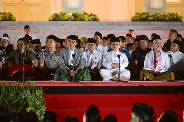 Selain itu tampak hadir pula Ketua Umum Majelis Ulama Indonesia Miftachul Akhyar, Ketua Umum Pimpinan Pusat (PP) Muhammadiyah Haedar Nashir, Ketua Umum Pengurus Nahdlatul Ulama Yahya Cholil Staquf, dan Imam Besar Masjid Istiqlal Nasaruddin Umar.