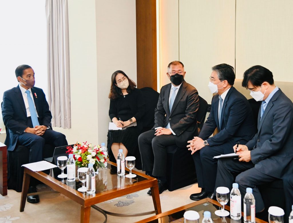 Mediacyberbhayangkara.com – Seoul – Presiden Joko Widodo menerima Executive Chairman Hyundai Motor Group, Chung Eui-sun, di Lotte Hotel, Seoul, pada Kamis, 28 Juli 2022. Dalam pertemuan tersebut, Chairman Hyundai menyampaikan bahwa mereka akan melakukan ekspansi untuk mobil listrik serta penelitian dan pengembangannya di Indonesia.