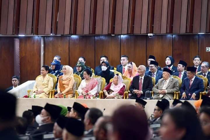 Turut hadir dalam acara tersebut adalah Wakil Presiden Ma’ruf Amin beserta Ibu Wury Ma’ruf Amin, para pimpinan dan anggota MPR RI, para pimpinan dan anggota DPR RI, para pimpinan dan anggota DPD RI, para pimpinan dan anggota lembaga-lembaga negara, Presiden Ke-5 RI Megawati Soekarnoputri, Wakil Presiden ke-6 RI Try Sutrisno, Wakil Presiden ke-9 RI Hamzah Haz, Wakil Presiden ke-10 dan ke-12 RI Jusuf Kalla beserta Ibu Mufidah Jusuf Kalla, istri Presiden ke-4 RI Ibu Sinta Nuriyah Abdurrahman Wahid, serta para Menteri Kabinet Indonesia maju.