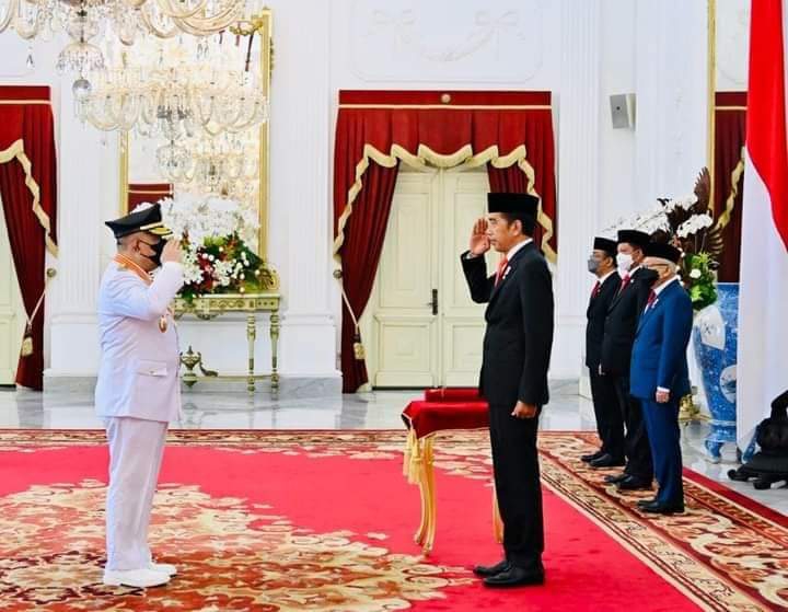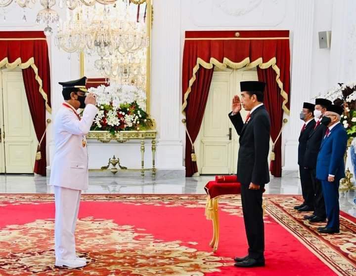 Pasangan terpilih terlebih dahulu menerima petikan Surat Keputusan Presiden di Istana Merdeka, Jakarta. Bersama Presiden Joko Widodo dan Wakil Presiden Ma’ruf Amin dengan didampingi Menteri Dalam Negeri, Tito Karnavian, gubernur dan wakil gubernur terpilih kemudian melakukan prosesi kirab menuju Istana Negara.