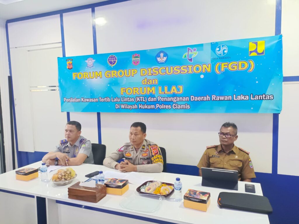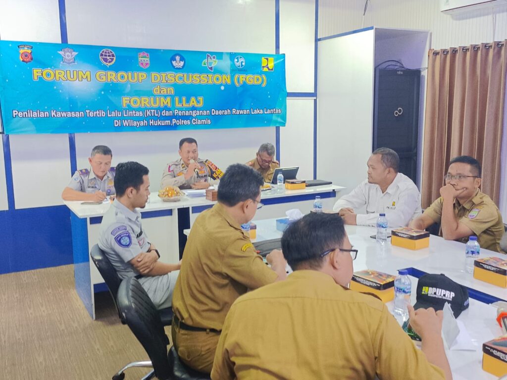 Ciamis, Jabar — Sat Lantas Polres Ciamis Polda Jabar melaksanakan kegiatan FGD dan rapat Forum Lalu Lintas dalam rangka persiapan penilaian Kawasan Tertib Lalu Lintas serta penanganan Daerah Rawan Laka Lantas. Kegiatan itu dilaksanakan di Ruang TMC Satlantas Polres Ciamis, Jawa Barat, Selasa (22/8/2023).