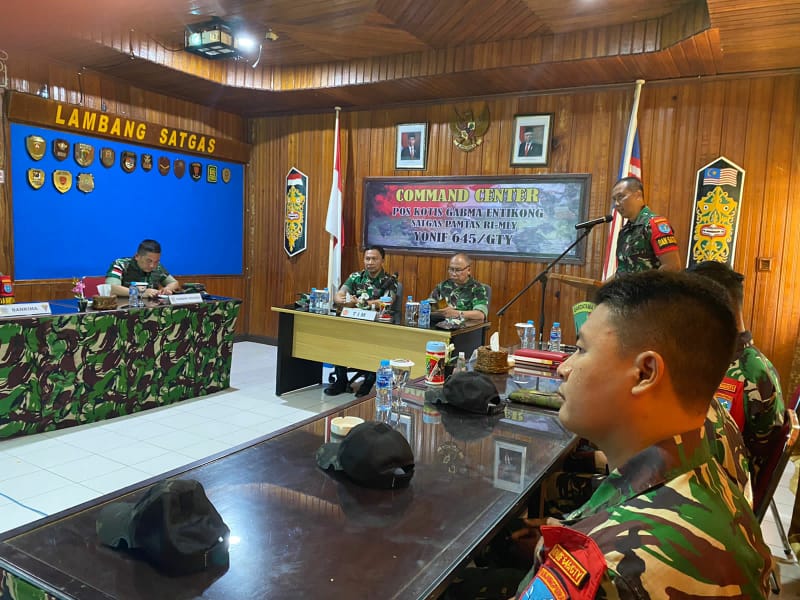 Mediacyberbhayangkara.com – Sanggau – Kalbar – Satgas Pamtas RI-Malaysia Yonif 645/Gty menerima kunjungan Kerja Tim Pengumpul Data Staf Ahli Panglima TNI Bidang Hubungan Internasional, bertempat di Markas Komando Taktis (Makotis) Satgas Pamtas Entikong, Kec. Entikong, Kab. Sanggau. Selasa (5/07/2022).