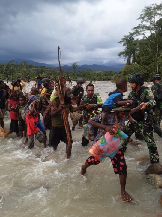 “Para warga ini menyeberangi sungai karena karena dirasa kampung mereka sudah tidak aman, akibat berbagai teror yang dilakukan kelompok KST Papua, “ terang Dansatgas.