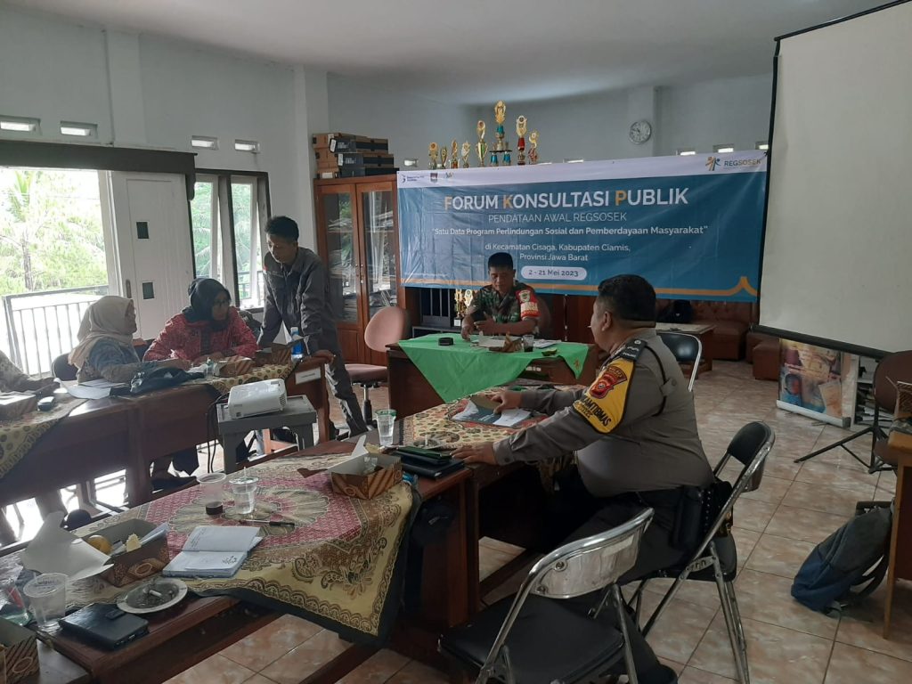 Ciamis, Jabar – Polsek Cihaurbeuti Polres Ciamis Polda Jabar melaksanakan kegiatan Forum Konsultasi Publik dalam Rangka Pendataan Awal Registrasi Sosial Ekonomi (Regsosek) 2022. Kegiatan ini dilaksanakan di Desa Sukahurip, Kec. Cihaubeuti, Kab.Ciamis, Jumat (5/5/2023).
