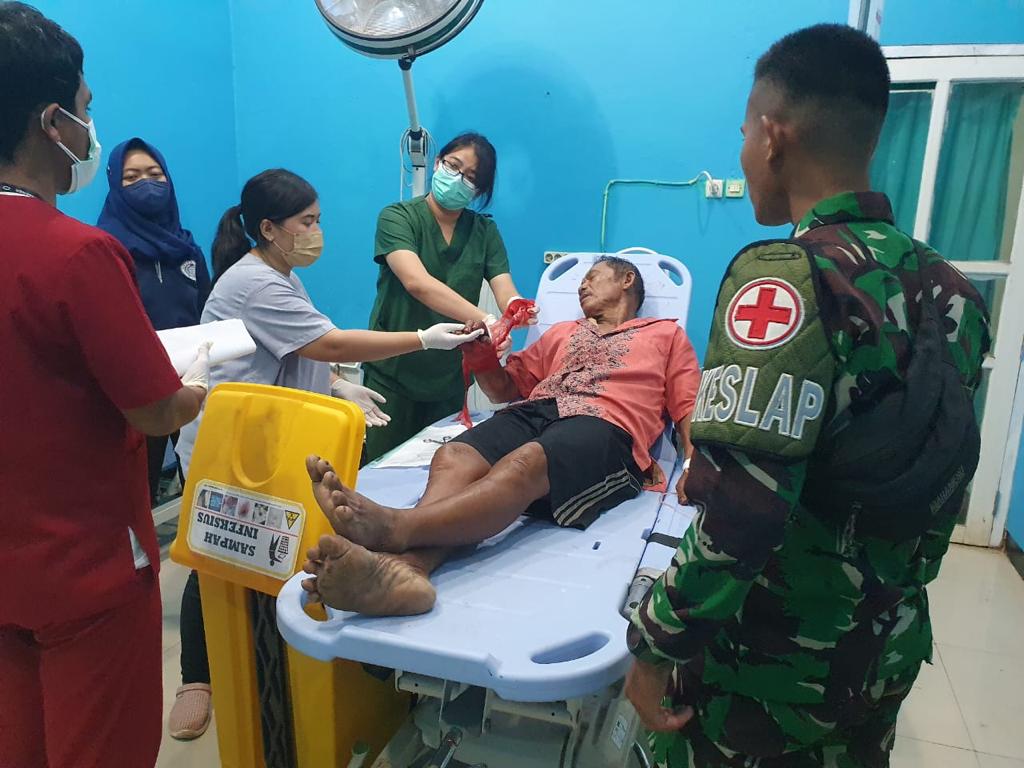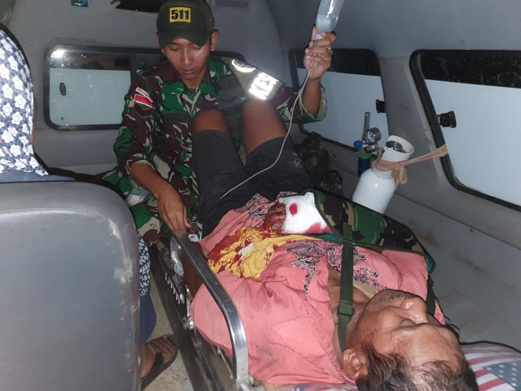 “Dengan sigap kami perintahkan personel kesehatan pos untuk merapat ke rumah korban, dan membawa korban ke puskesmas yang tidak jauh dari pos, akan tetapi karna luka yang terlalu parah sehingga disarankan dirujuk ke RSUD Merauke,” ujar Lettu Inf Gatot Primadasa.